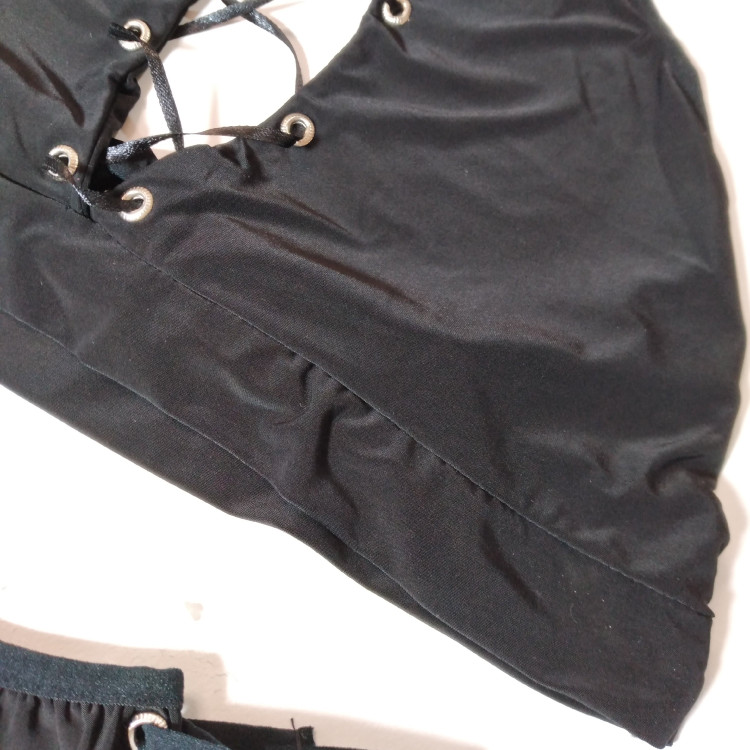 این کار تنخور فوق العاده ای داره سوتینش کاپ وفنرنداره ولی ایستاییش عالیه البته بستگی به فرم بدن خودتون هم داره. جنسش غواصی بسیار عالیه اصلا بدن رو اذیت نمیکنه دوتابندداره که پشت گردن بسته میشه که زیبایی کاررو چندین برابرمیکنه سایزبندی نداره و فری هستش و ازسایز۷۵تا۸۵ رو ساپورت میکنه