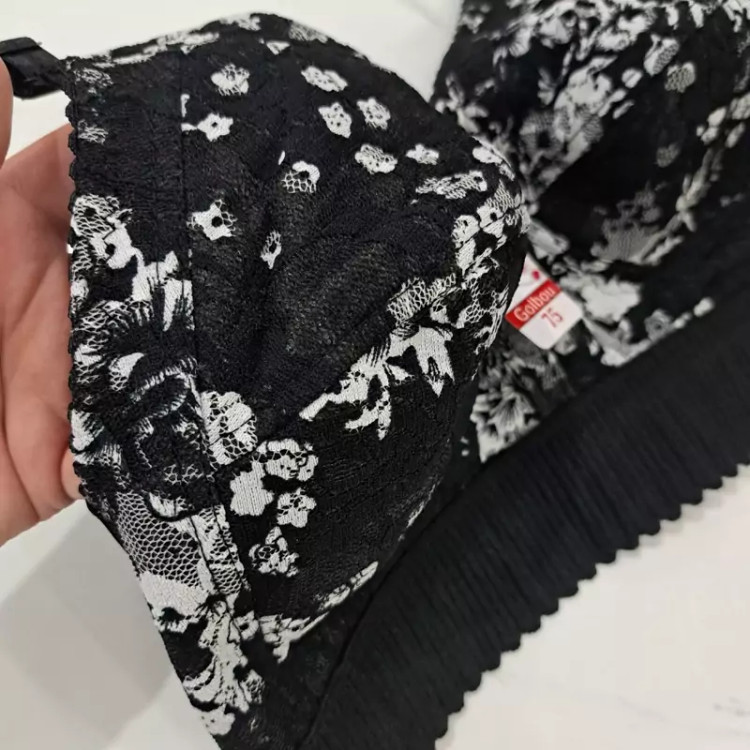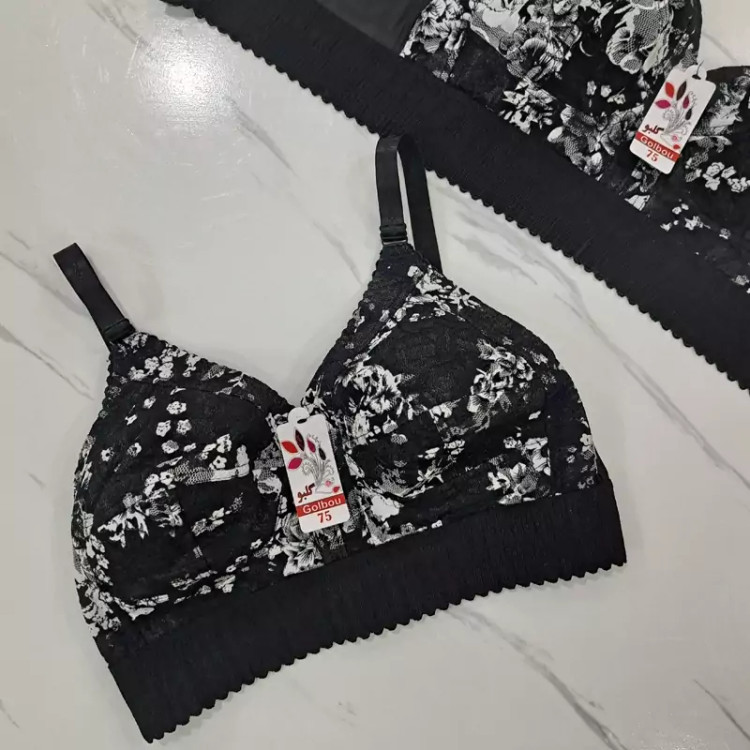 جنس رویه گیپور و داخلش کاملا نخیه تک رنگ فقط مشکی و فقط سایز75 موجوده زیرش کش پهن داره برای کسانی که پهلو دارن خیلی مناسبه دو ردیف 4غزنه داره یه کار شیک در عین حال راحت هستش.