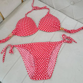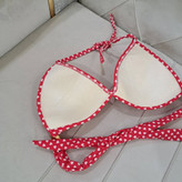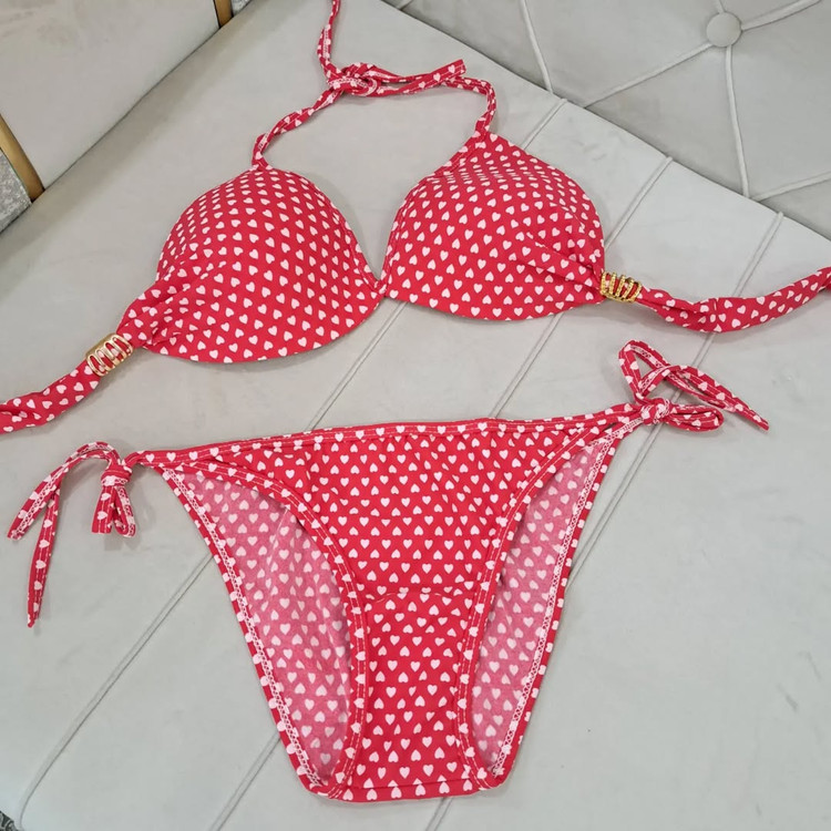 متاسفانه این کالا در حال حاضر موجود نیست. میتوانید از طریق لیست بالای صفحه، از محصولات مشابه این کالا دیدن نمایید.ست بیکینی قلبی کاپ مثلثی سوتین بنده داره که از پشت بسته میشه شورت به صورت گره ای هست یه کار شیک،فانتزی و دلبر