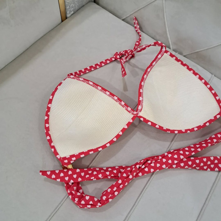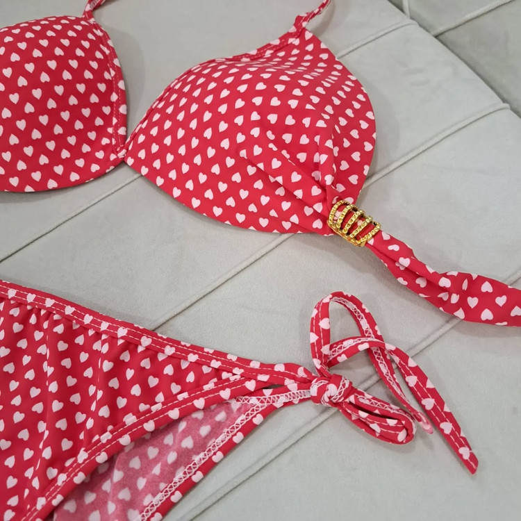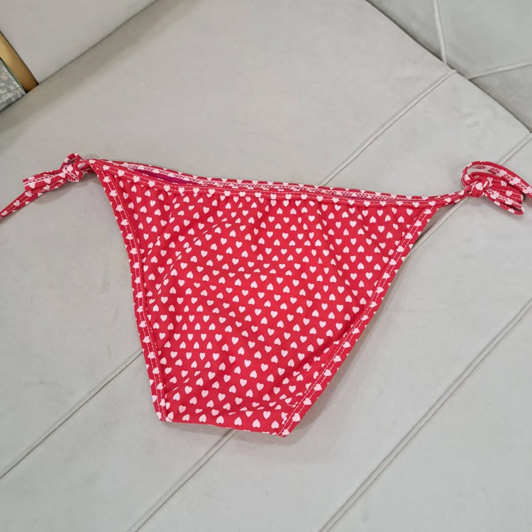ست بیکینی قلبی کاپ مثلثی سوتین بنده داره که از پشت بسته میشه شورت به صورت گره ای هست یه کار شیک،فانتزی و دلبر
