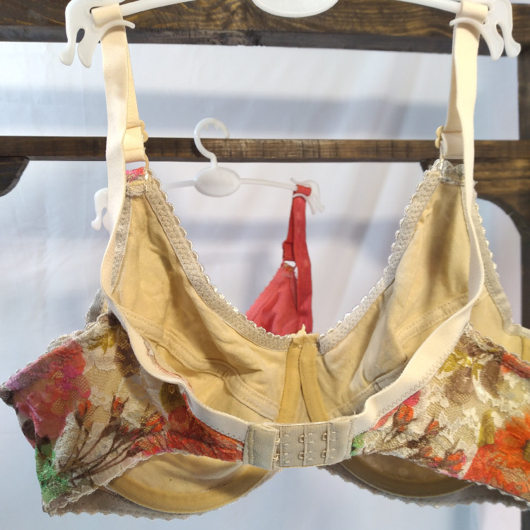 داخل کاپ تماما نخ به کار برده شده و یه کار بدون حساسیت و تمام عیار تقدیمتون میشه از کیفیت و زیباییش هرچی بگم کمه! زیرسوتین فنرداره که باعث خوش فرم نشون دادن سینه ها میشه روی کار گیپور طرح دار کارشده