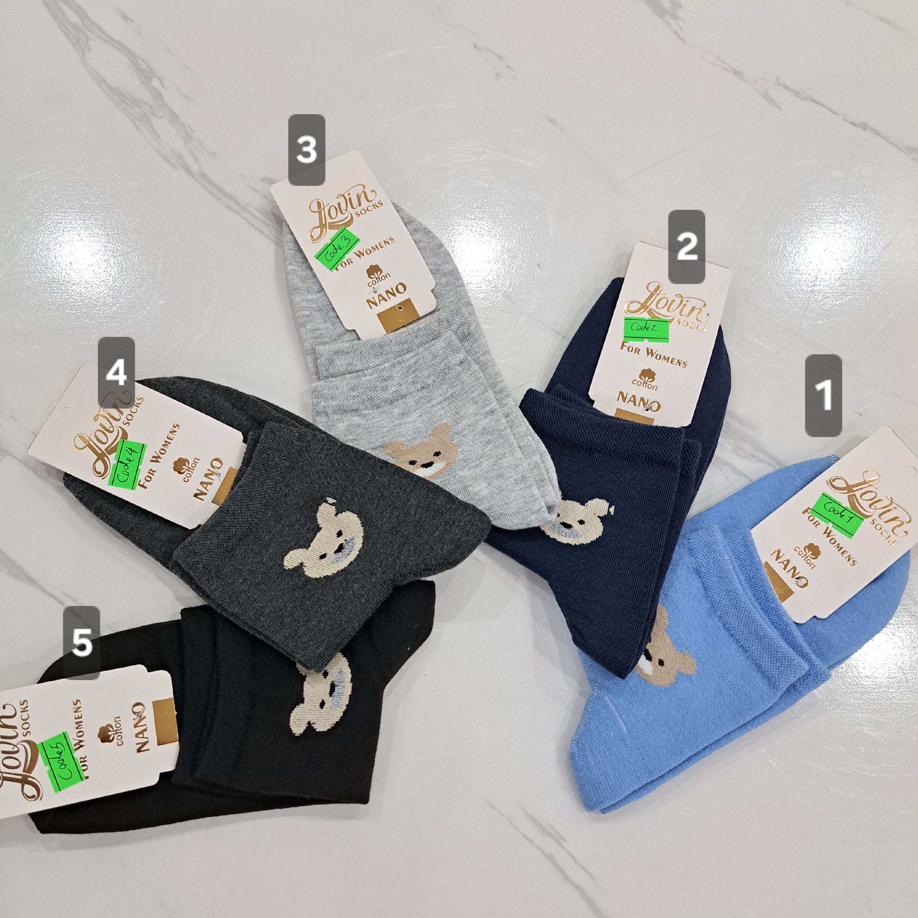 جوراب زنانه ساق کوتاه با طرح خرسی و جنس نخی اعلا در ۵ رنگ مختلف موجود می باشد و از سایز۳۷تا۴۰ را ساپورت می کند.