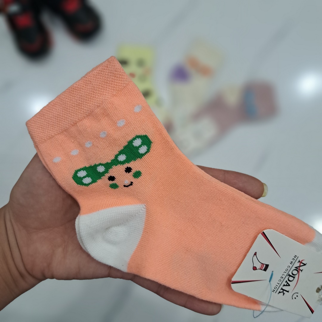 جوراب دخترانه طرح لبخند در سایزبندی 4 تا 9 سال و رنگبندی زرد کرم کالباسی و نارنجی موجود می باشد. سایزبندی ای که نوشته شده طبق چیزی هست که روی خوده جوراب زده. شده